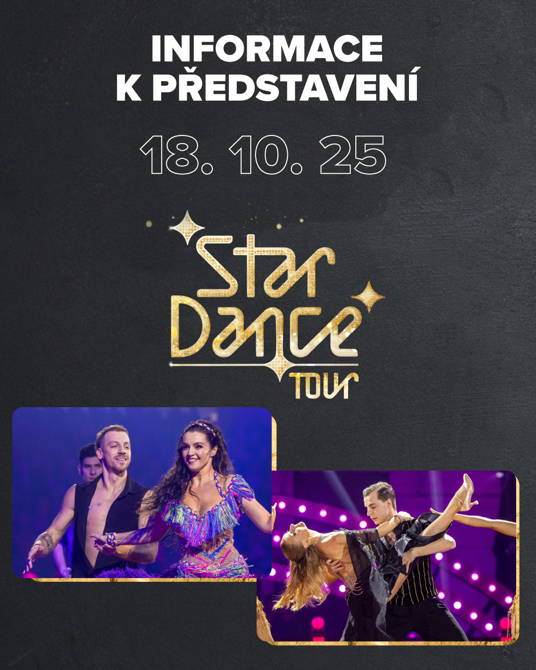 Ve StarDance Tour nebude chybět MoonDance Orchestra Martina Kumžáka ani porota! Potkáte známé i nové tváře. A společně ohodnotíte taneční výkony párů, které se nesmazatelně zapsaly do historie StarDance. Každý pár vám předvede svůj nejlepší tanec ze soutěže.