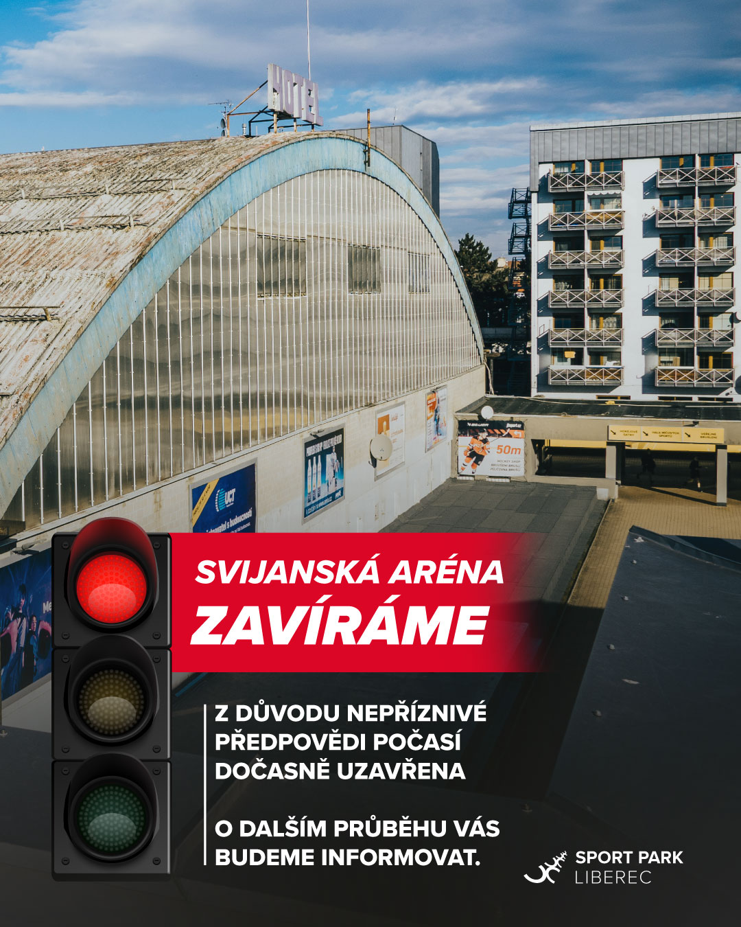 Z důvodu očekávaného sněžení a na základě statického posudku je Svijanská aréna od 11:00 30. 12. 2025 preventivně uzavřena.